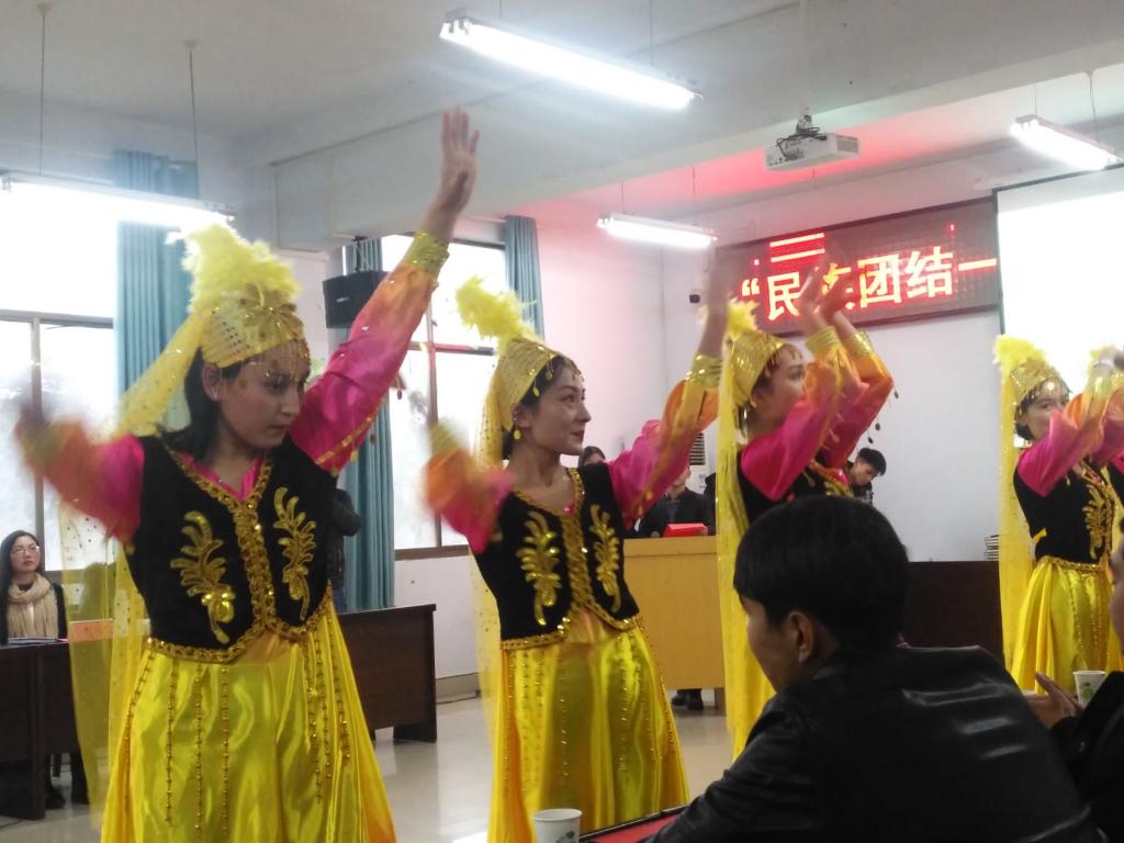 下午16:00联谊会在维吾尔族学生帕提曼·麦麦提的独舞《新疆吆喝》中正式开始,随后,节目表演开始,在演出中,新疆籍学生以歌舞的形式把党的民族政策与校园文化结合起来,用曼妙的舞姿把党委政府民族团结的声音及时传达到内地高校,不仅展现了新疆籍少数民族学生的热情,而且以丰富多彩的文化活动作为载体,表达出了“民族团结一家亲”的深刻内涵,充分体现了新疆少数民族学生热爱生活、积极向上的精神风貌。精彩纷呈、形式多样、欢乐喜庆的每一个节目给与会者们带来视觉上的享受,获得阵阵喝彩。