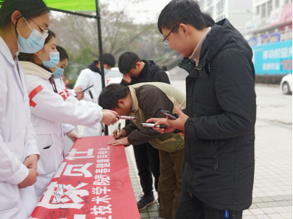 12月1日,护理学院在校内开展艾滋病日宣传活动,活动覆盖了整个校区,现场放置大幅海报,标识了艾滋病的预防知识,悬挂了“携手抗疫防艾,共担健康责任”等标语,青春同伴社与护理学院学生会成员为路过学子分发宣传资料、宣讲防艾知识,为来往的师生佩戴红丝带,呼吁师生尊重艾滋病患者,关爱他们,从我做起,从今天做起。师生们纷纷在横幅上签字,表示“携手抗疫防艾,共担健康责任”。