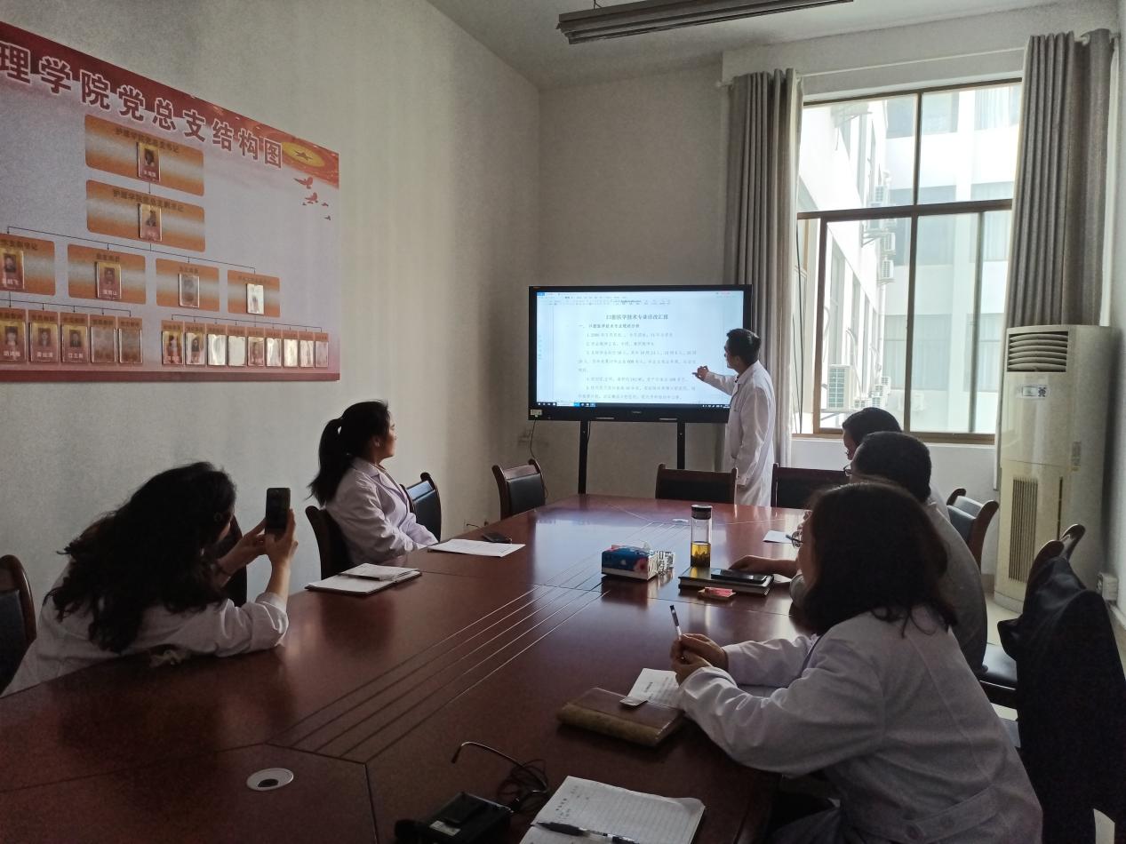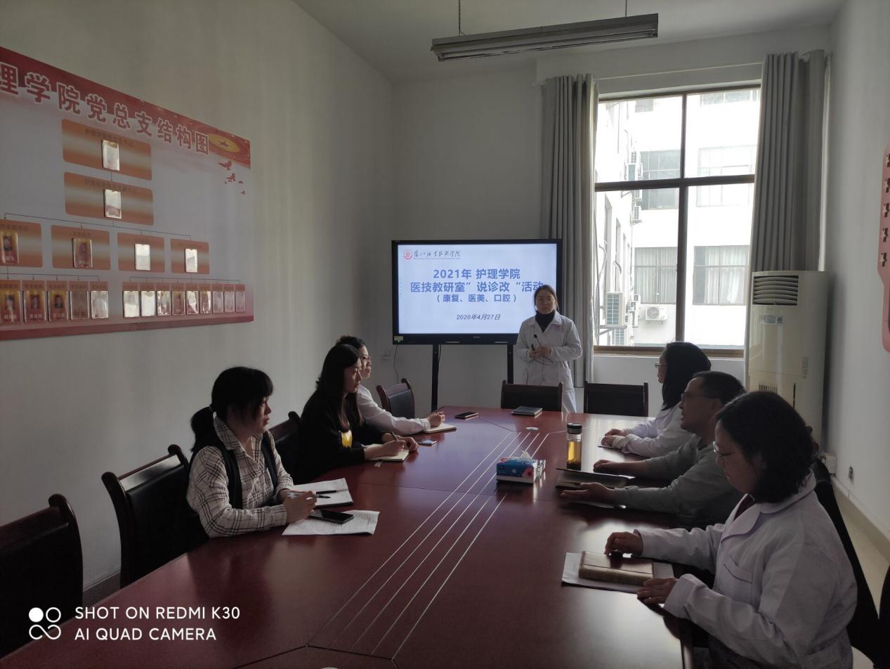为响应学院质量处“说诊改”活动的号召,护理学院医技教研室4月27日下午在3222开展三个层面说诊改汇报。护理学院院长何宁同志、医技教研室主任及专任教师悉数参加,教师们分别从专业、课程、个人三个方面汇报总结2021年的诊改目标及质控项目,改进措施等。活动期间,何宁同志针对三个层面的内容与各位教师沟通,并提出了可实施可操作的诊改建议,教师们大受启发,收获颇多。