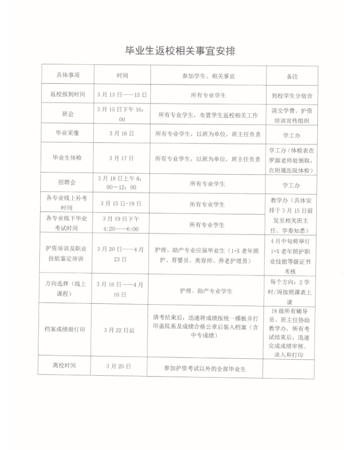 护理学院2018级学生返校工作安排