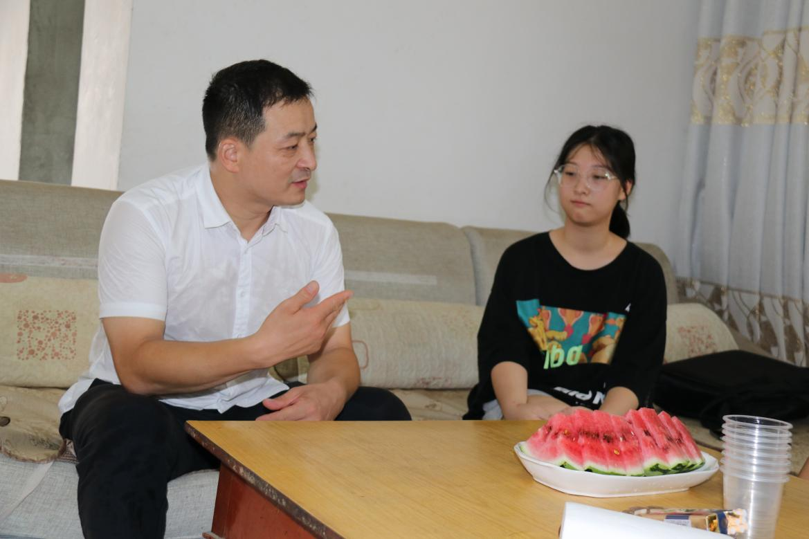 当见到老师的时候开心得心快要溢出来了,因为我能感受到老师们对学生的责任感,并对老师们的敬业精神感到由衷地敬佩。我家在襄阳市襄城区贾洲村,当我看到两位老师大汗淋漓的走在路上,不免有些心疼他们路途疲惫,想快点把老师带到家里歇个脚,疏散一下身心的疲惫。很抱歉的是家里并没有安装空调,在风扇的呼呼声中,老师和父亲及我就坐在沙发上聊了起来,从家庭聊到我个人及在学校学习生活的情况。辛苦老师们耐着酷暑的炎热来了解我和我的家庭。