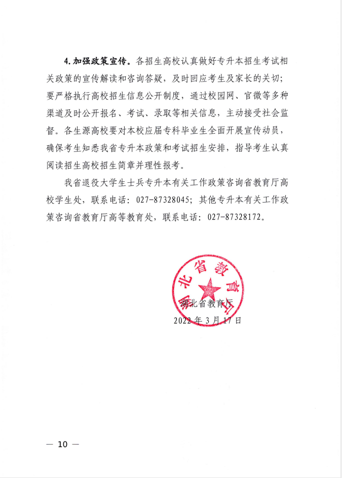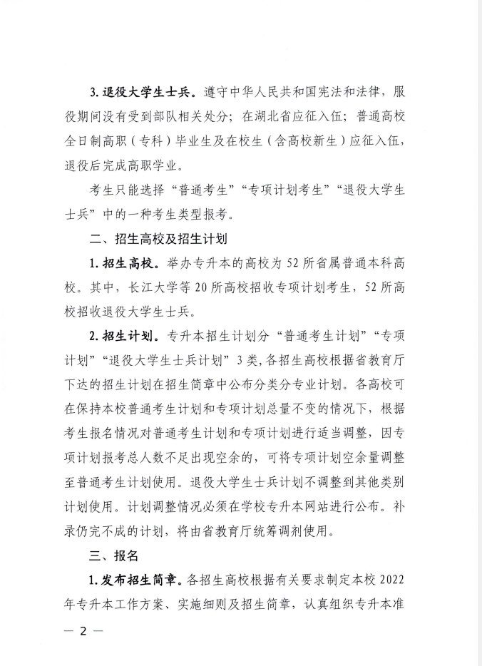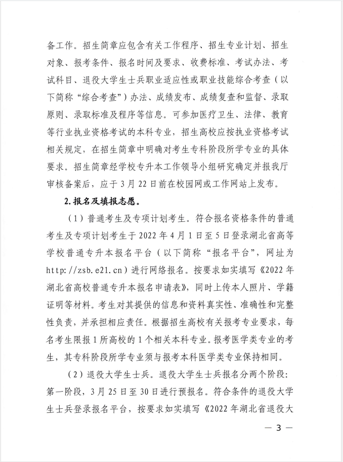 省教育厅关于做好2022年湖北省普通高等学校专升本工作的通知