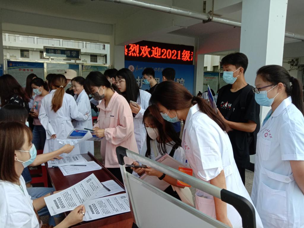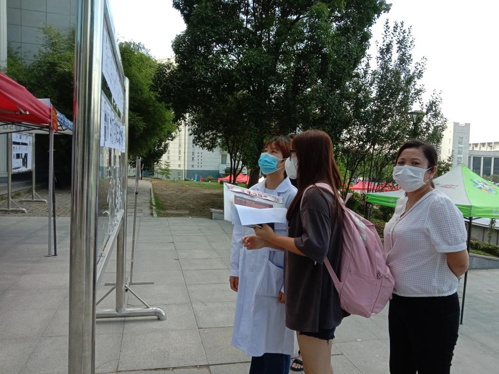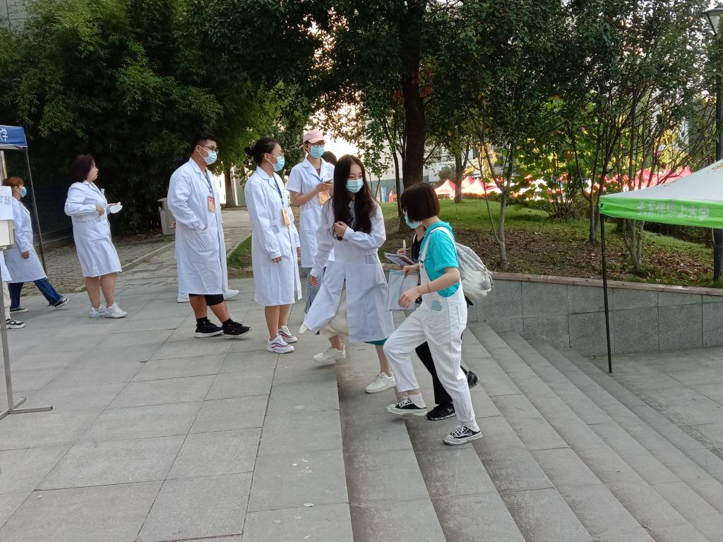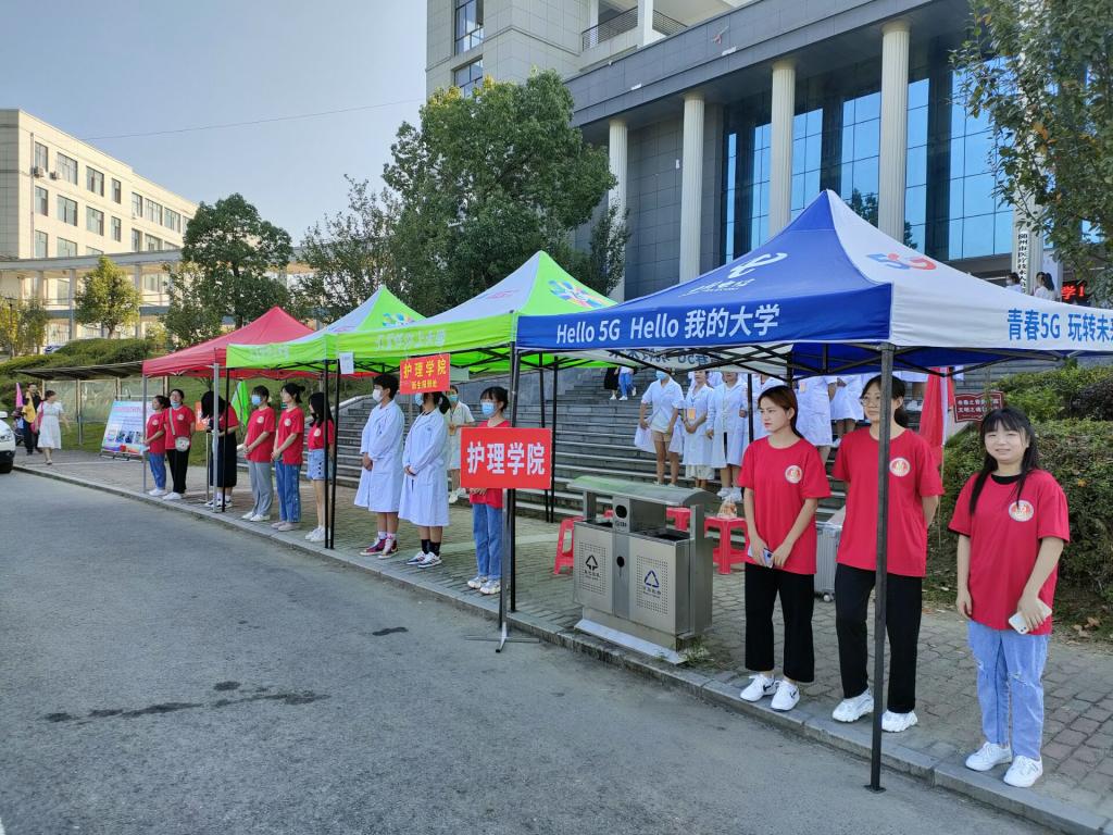 在9月11日至9月12日,校园里到处都可以看到护理学院的志愿者,这些志愿者由护理学院20级各个班级的团员组成,共计有130余人,这些志愿者在图书馆前架起了新生报到接待处,为新生指引道路,帮新生提东西、看管行李,带新生去报道,为家长提供休息的座位。