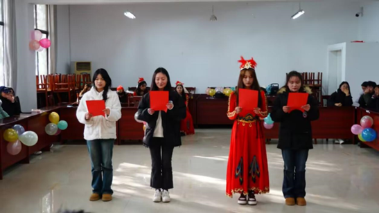 23级护理13班苟世玲、祖丽菲亚,23级护理11班阿洛阿牛,23级护理12班易思雨带来的诗歌朗诵《民族团结中国梦》。她们声音洪亮、松弛有度,如涓涓流水润泽心灵。