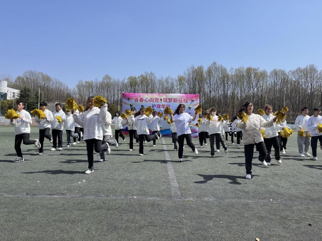 为了营造欢快热烈的氛围,丰富大学生的课外生活,展现大学生的青春蓬勃的气息,3月21日,护理学院在田径场上举行了“阳光心理 舞出健康”啦啦操比赛。