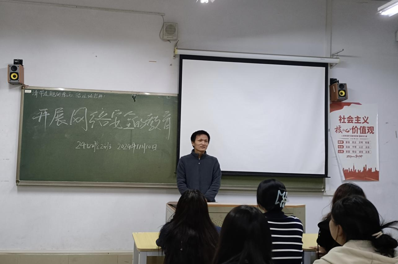 为进一步提高护理学院全体学生网络安全意识,提升网络安全风险识别能力,普及网络安全知识,强化网络安全防范水平,增强学生们的自我保护能力,筑牢校园网络安全防线。2024年11月10日晚,护理学院组织全体学生开展了“网络安全教育”主题班会。