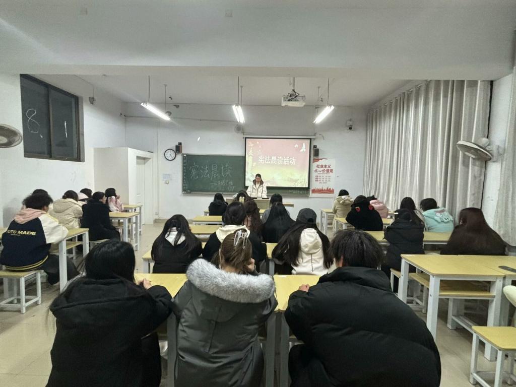 开展“宪法晨读”,让宪法“声”入人心。通过朗读的形式学习宪法知识,加深对宪法内容的进一步了解,在全体学生中掀起学宪法、懂宪法、守宪法热潮。