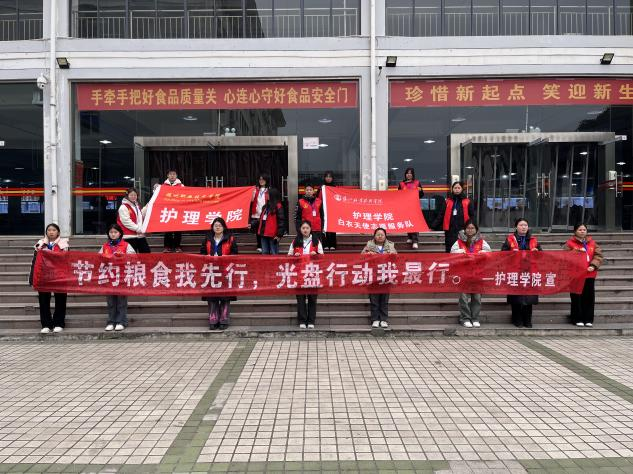 2024年12月22日,护理学院白衣天使志愿服务队在西苑食堂举办了“节约粮食我先行,光盘行动我最行”主题活动,通过在西苑食堂张贴宣传海报、悬挂横幅和邀请学生签名抽奖等方式,呼吁学生节约粮食、避免浪费,在校园内掀起了节约新风潮。