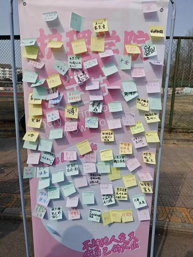 2025年3月8日,为庆祝三八妇女节,护理学院在运动场举办了一场别开生面的抽奖活动,本次活动以“不被他人定义,做自己的大山”为主题,吸引了众多师生参与,现场气氛热烈,充满欢声笑语。学生工作办公室王婧祎到场参加活动。