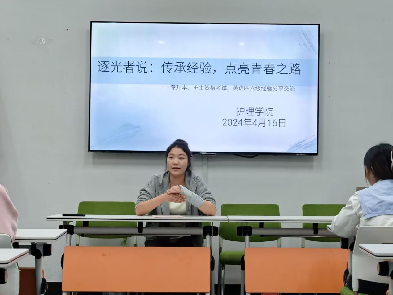 本次交流会特邀国家奖学金获得者丁亦淳、预备党员陈勇、护士资格证通过者梁俊瑞到场,他们围绕专升本备考、护资考试、四六级备考等重要学业挑战,倾囊相授备考秘诀,为同学们答疑解惑。
