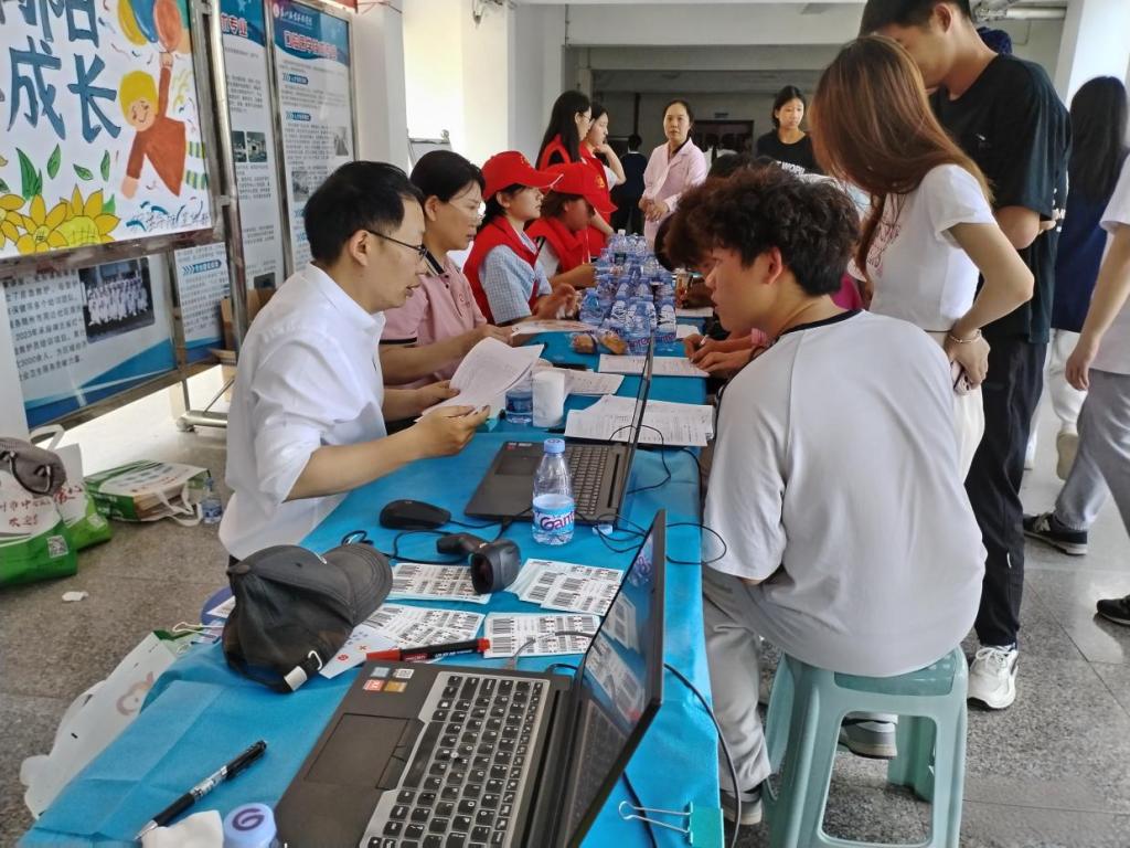 当第一缕阳光掠过3102 教室的窗台,护理学院学生会的 “00 后”志愿者们已将300 份献血登记表整理成整齐的扇形。“请您先填写健康征询表,这边有温水和糖果。”2023 级护理专业学生周岐玲的声音带着清晨的清亮,她红马甲上的“青年志愿者”几个字在灯光下格外醒目。在她身后,体检区的血压仪此起彼伏地响起“嘀嗒”声,与采血区血袋滴落的“滴答”声交织成生命的二重奏。