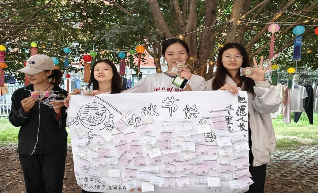 为弘扬中华传统文化,营造温馨节日氛围,护理学院“白衣天使”志愿服务队于2025年9月27日傍晚,在兰馨社区成功举办“情暖中秋,趣享校园”活动。现场气氛热烈,吸引了众多师生踊跃参与,共庆团圆佳节。