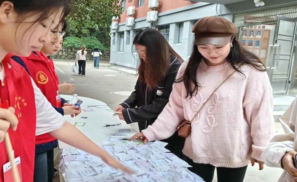 活动现场,一系列沉浸式文化体验让师生们尽情领略中秋魅力。“寄语传情”区,同学们提笔挥毫,让思念浸润墨香;“趣味投壶””区,团队协作间迸发出阵阵欢呼;“智慧灯谜””区,思维的碰撞闪烁着传统智慧的火花。老师们也欣然融入,与学生们畅谈习俗、分享趣闻。欢声笑语间,校园大家庭的温暖与和睦深入人心,一颗名为“温情”的种子在此刻悄然种下。