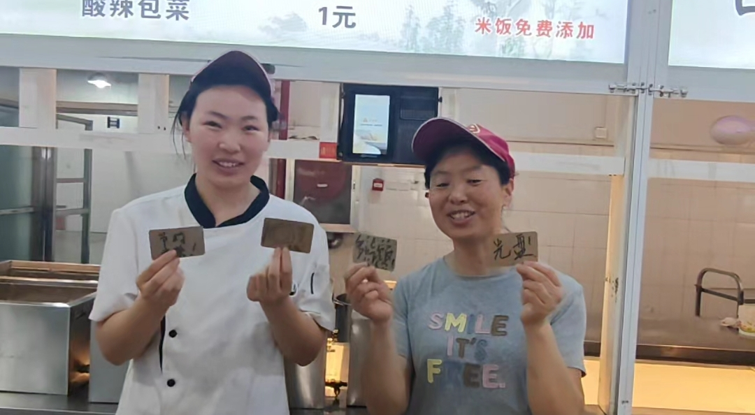 身着工作服的食堂阿姨们惊喜现身,手举亲手制作的“光盘行动”标牌,用质朴的语言讲述餐饮工作中的节约智慧。“我们每天看着同学们吃饭,最开心的是看到干干净净的餐盘!”一位阿姨的分享引发共鸣。师生们与阿姨们携手合影,共同举起标牌高呼“光盘行动,从我做起”,将活动氛围推向高潮。