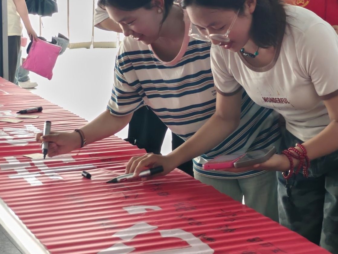 活动尾声,一条印有活动主题的红色长卷徐徐铺开,师生们有序排队,郑重签下自己的名字。笔尖划过之处,既是个人承诺的见证,更是集体行动的宣言。护理学院党总支副书记朱胜利在签名时寄语:“节约不仅是一种美德,更是一份责任。希望每个人都能将‘光盘’化作日常习惯,让文明用餐成为校园新风尚。”签名墙上密密麻麻的名字,如繁星汇聚,照亮节约之路。