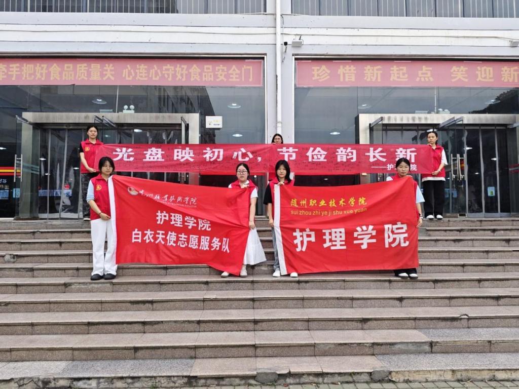 为深入贯彻落实国家“厉行节约,反对浪费”的号召,弘扬中华民族勤俭节约的传统美德,2025年6月6日,护理学院白衣天使志愿服务队在西苑餐厅精心策划了一场别开生面的“光盘映初心,节俭韵长新”主题宣传活动。全校师生积极响应,以创意互动与庄重承诺,共绘节约型校园的文明画卷。