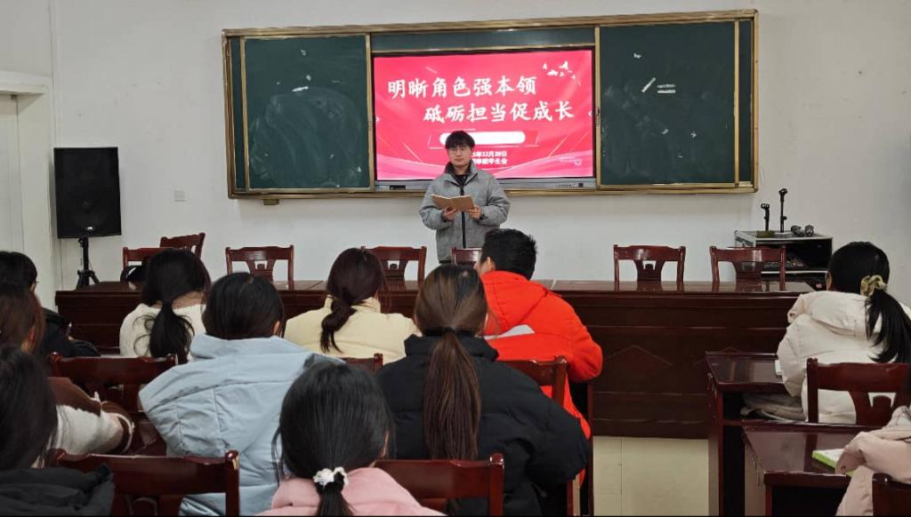 为深入贯彻学校育人理念,加强学生干部队伍建设,提升学生骨干的综合素养与履职能力,12月29日,护理学院在巧稚楼3220教室举办“明晰角色强本领,砥砺担当促成长”学生会干部专题培训会。本次培训由学生会主席团成员袁蕊希主讲,学院相关负责老师、学生会全体干事及各年级班级骨干共同参加。