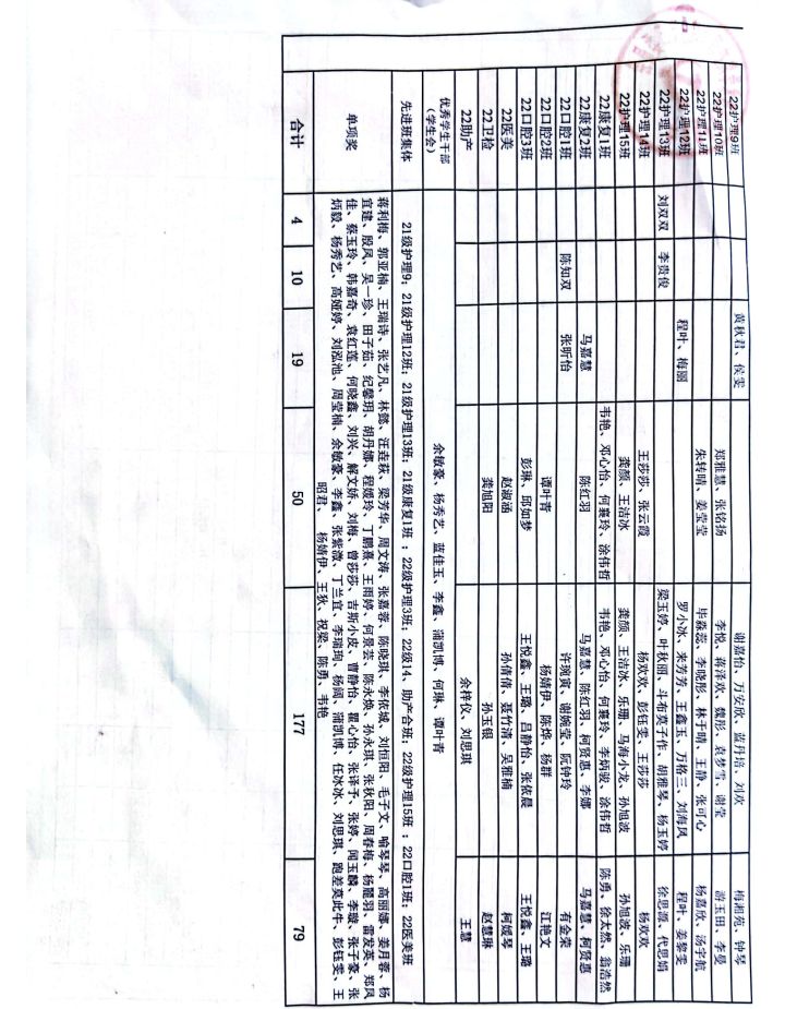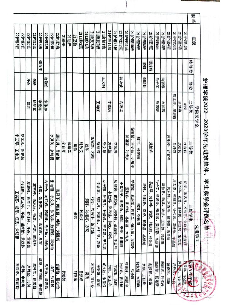 护理学院关于2022-2023学年学生评优评先初审名单公示