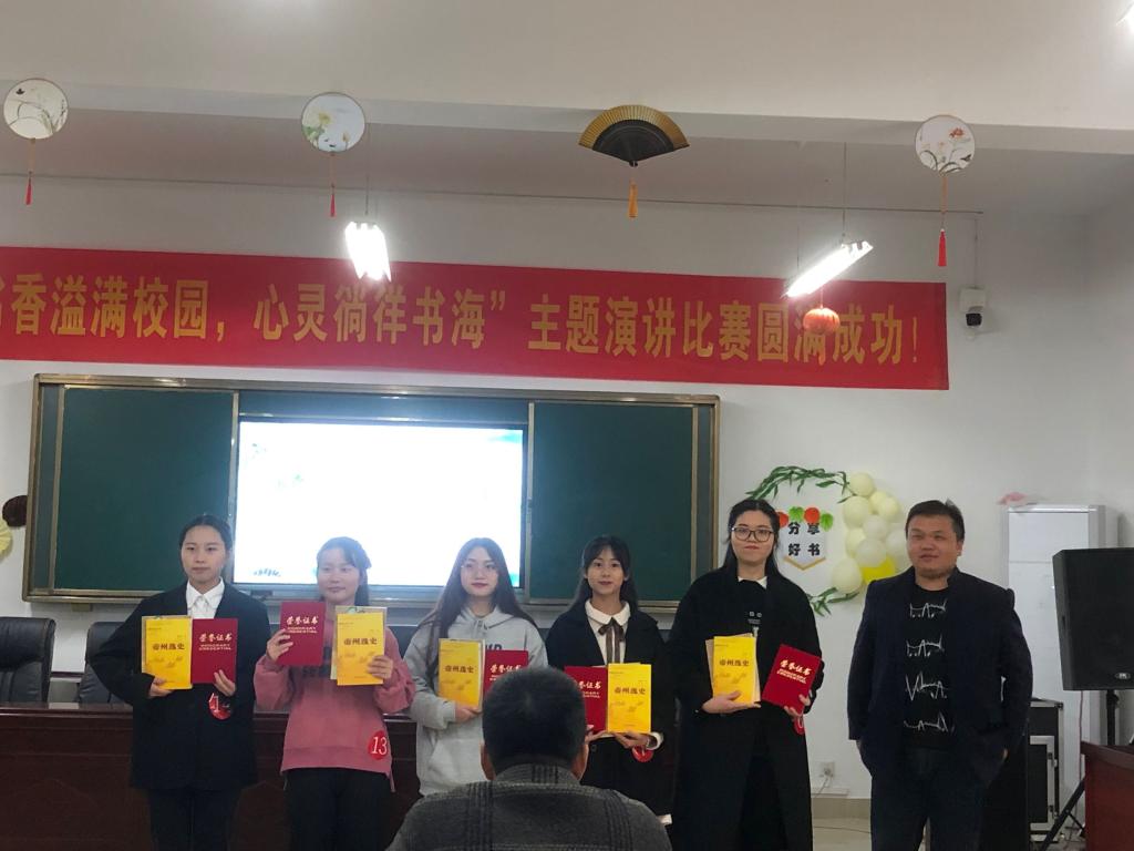 本次演讲比赛得到了校领导和老师们的大力支持,演讲比赛决赛由图书馆童馆长致开幕词,鼓励同学们多读书,读好书!经现场评委打分,本次读书演讲比赛共产生一等奖2名,二等奖3名,三等奖3名及优秀奖10名。
