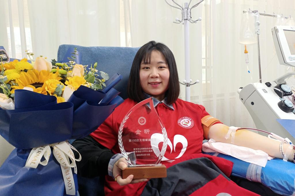 “2月13日上午,四川南充市中心血站迎来了一位重量的“献血大王”,22岁的金昕,今天刚好是她第100次无偿献血。从18岁献血起,4年时间里,她100次献血,合计200治疗量,相当于40000毫升。金昕现就读于湖北随州职业技术学院医学检验专业......”