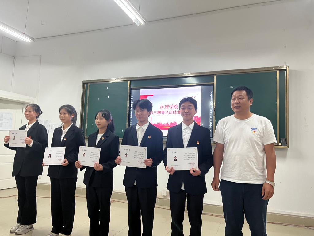 大会第三项,护理学院党总支副书记吴鹏飞为第三期青马班学员颁发结业证书。