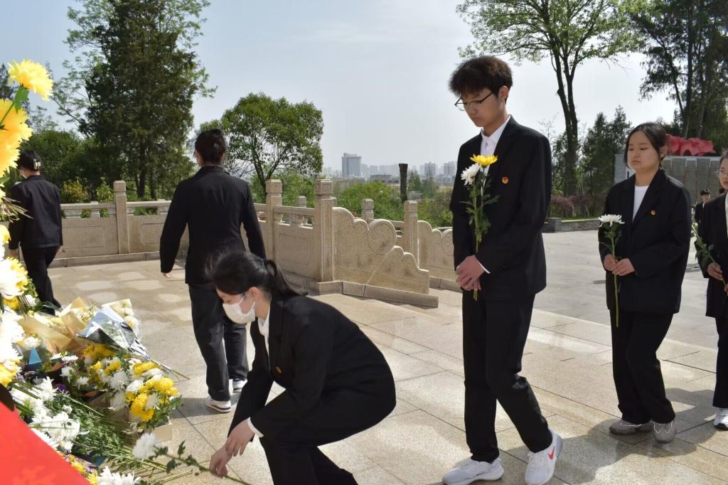 本次活动在庄严的国歌声中正式拉开了序幕,同学们怀着对烈士的崇敬之情,齐聚随州市烈士陵园,共同缅怀为战争而光荣牺牲的烈士,以告慰烈士先灵。在负责人的带领下,学子们有序地参观了革命烈士陈列馆、陵墓等,大家在革命烈士纪念碑前鞠躬默哀、寄托思念,为烈士敬上装载崇敬之意的鲜花,并低呤致悼词来表达心中对先烈的沉重情感。