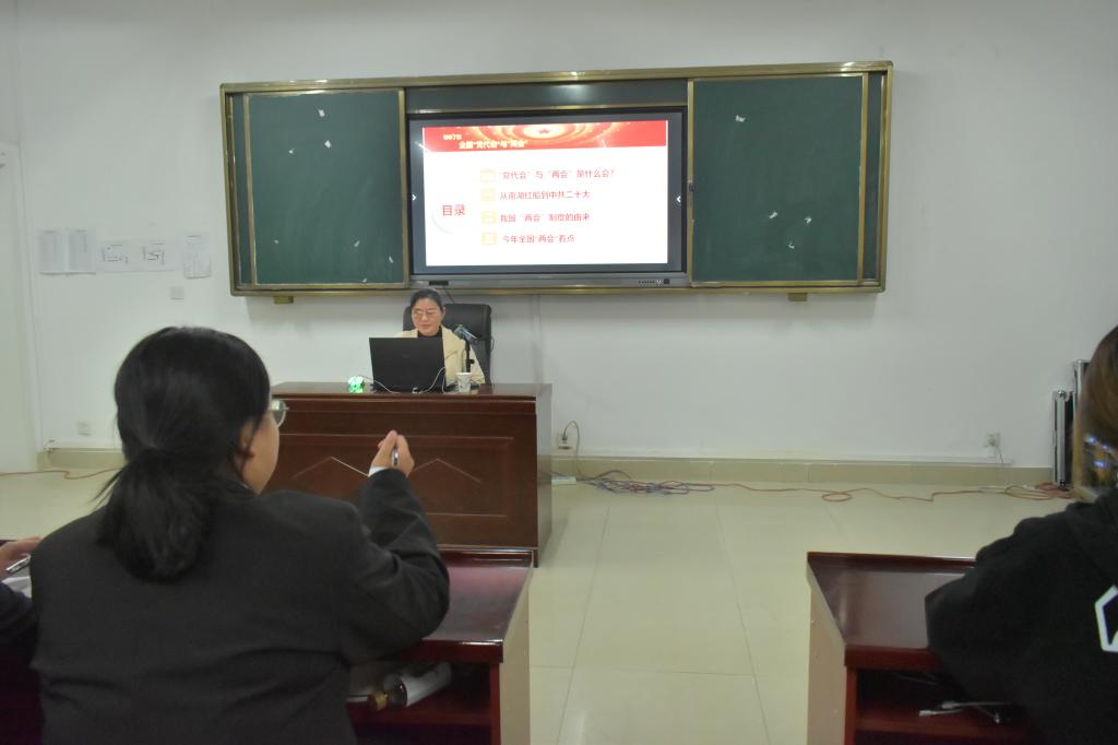 为了增进当代大学生对“党代会”与“两会”的理解,为同学们科普“党代会”与“两会”的相关知识,引领广大青少年感受新时代伟大成就,不断增进对党和社会主义祖国的朴素情感,增强时代新人的责任感与使命感。2023年3月15日,护理学院邀请马克思主义学院张宇老师在3220教室为第三十三期入党积极分子及第三期青马班全体学员授课。