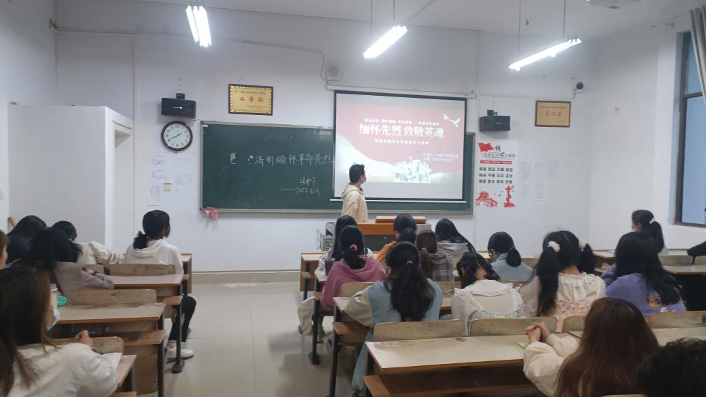 本次活动采取“线下+线上”主题团课形式开展沉浸式主题教育。线下活动由团总支副书记带领各班团支书共同观看建党史,重温中国共产党建党那段峥嵘岁月,感受革命先辈崇高的信仰和对共产主义事业不懈的追求。线上活动由各班团支书组织全班同学参与“云”祭扫这一绿色文明祭祀方式。同学们纷纷登陆中华英烈网,来烈士英名录里向革命烈士献花鞠躬,书写感言寄语,表达对英烈的缅怀和敬仰。