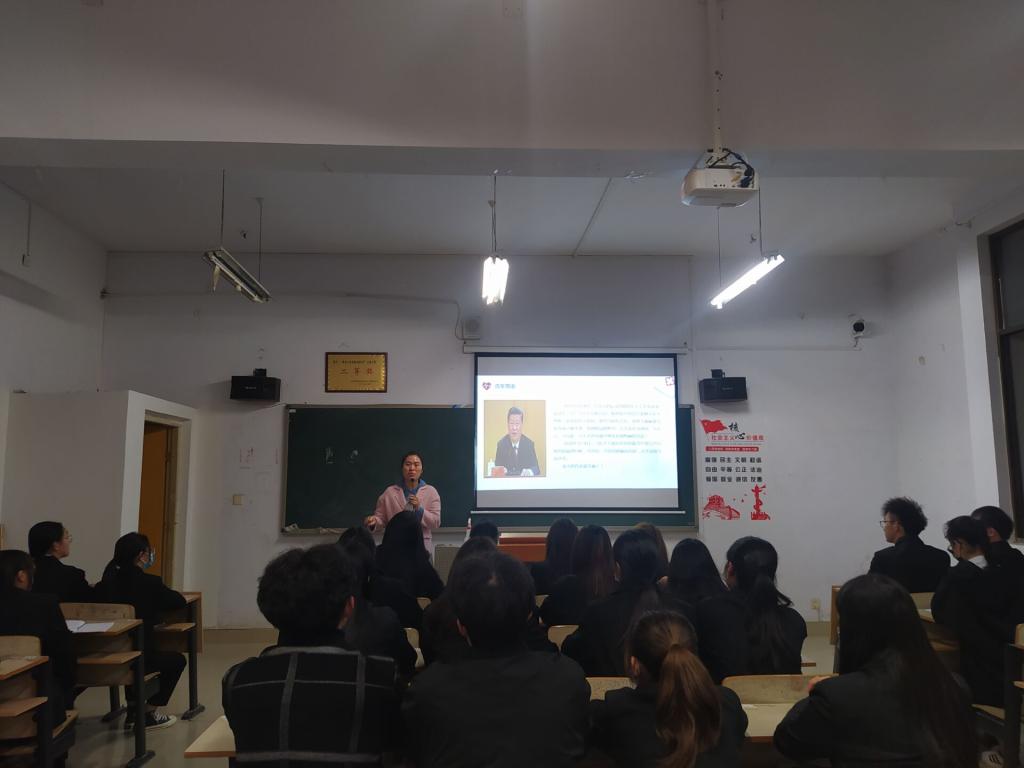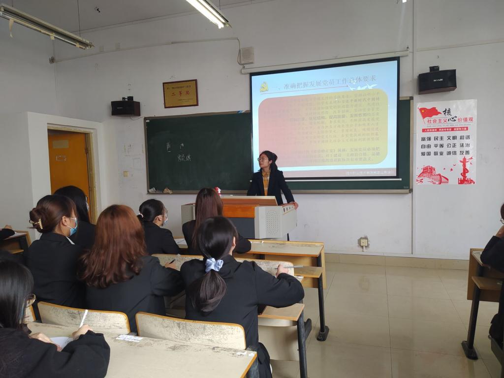 3月15日,何博老师以《加强新形势下发展党员和党员教育管理工作》为主题,为学生讲解如何成为一名合格的党员,引导学生规范自己的行为举止,向党靠近。