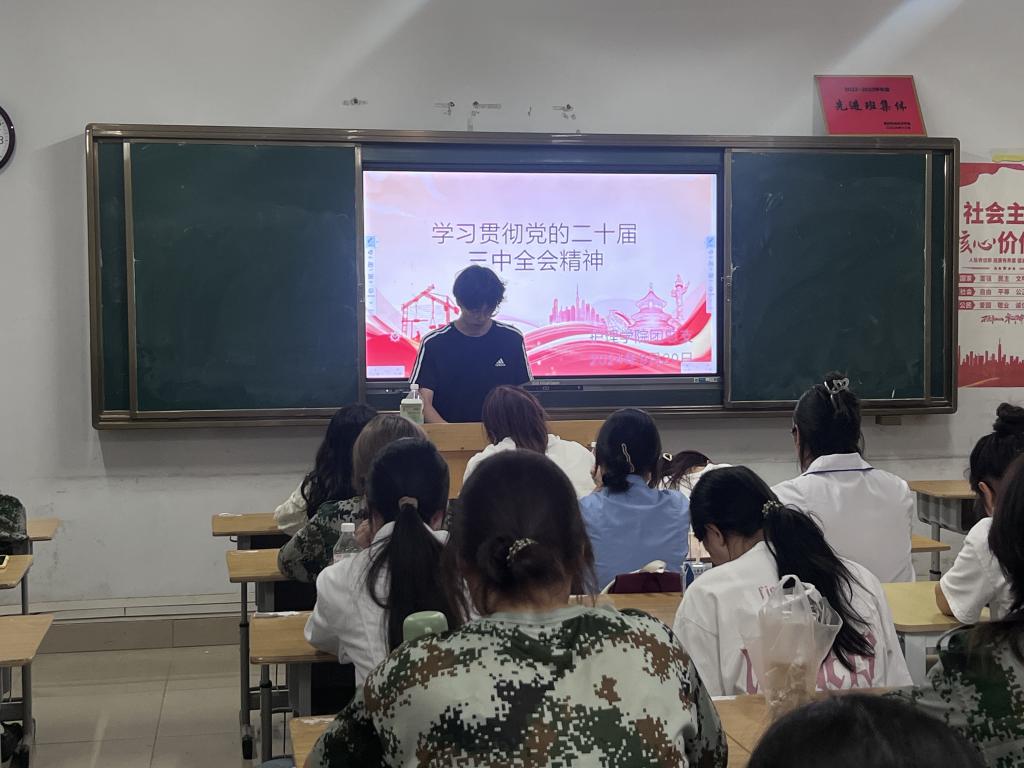 活动伊始,主持人介绍了此次团日活动的目的和意义,党的二十届三中全会是在以中国式现代化全面推进强国建设、民族复兴伟业的关键时期召开的一次十分重要的会议。接着再观看“二十届三中全会”相关视频中,习近平总书记与时俱进,提出创新理论,作出战略抉择,破解前进路上纷繁复杂的挑战。他提出创新、协调、绿色、开放、共享的新发展理念,引领中国经济迈向高质量发展阶段,立足国家发展和安全大局,提出加快构建新发展格局,着眼建设现代化强国目标任务,提出发展新质生产力。在他的掌舵领航下,中国经济破浪前行。随后,护理学院团总支学生书记曾旭东讲解微团课,告诉青少年要以更加饱满的热情和昂扬的斗志,担当起时代赋予我们的责任和使命。最后,王婧祎老师殷切希望各位团支书努力学习,内化于心,外化于行。