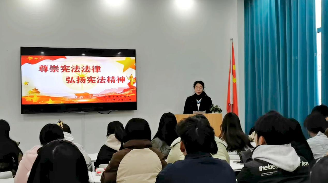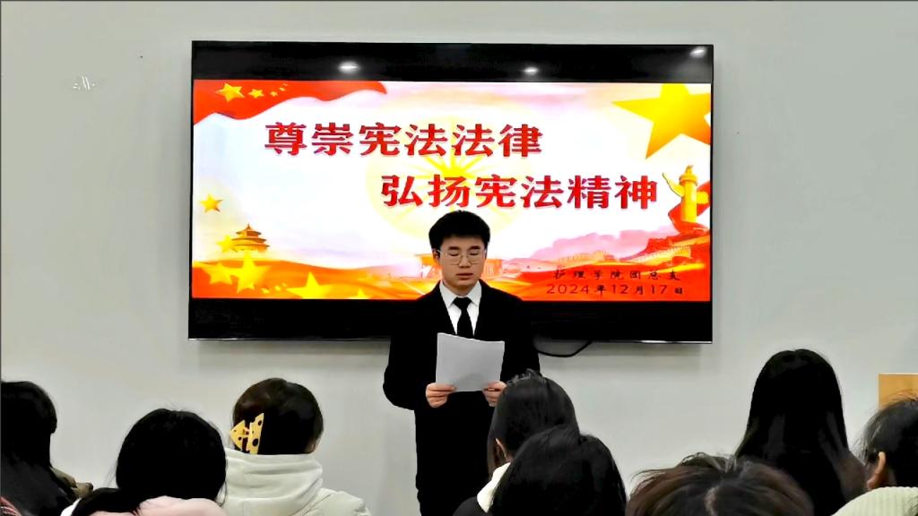 2024年12月17日,护理学院团总支在一站式学生社区开展了以“尊崇宪法法律--弘扬宪法精神”为主题的团日活动。参与此次活动的有护理学院王婧祎老师、23、24级各班级的团支书以及护理学院团委全体成员。